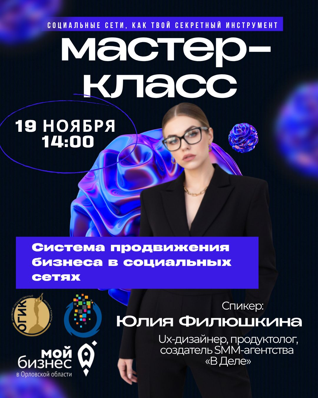 Спикер: Юлия Филюшкина — эксперт по аудиту и упаковке соцсетей. Расскажет, как превратить подписчиков в клиентов и найти точки роста для вашего бизнеса.