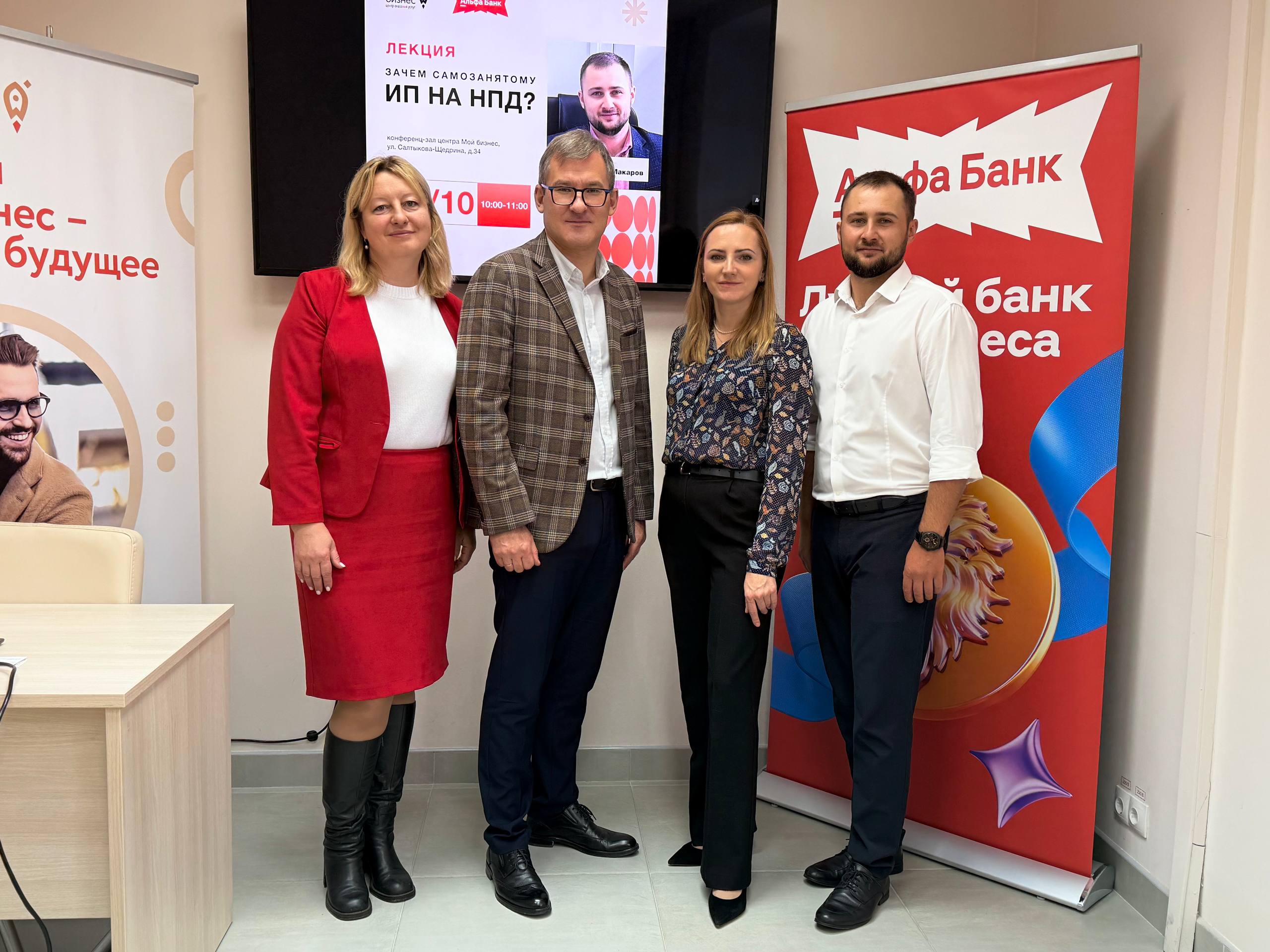 В лектории Центра «Мой бизнес» состоялась интерактивная лекция «Зачем самозанятому ИП на НПД?», организованная совместно с Альфа-Банком. Мероприятие собрало самозанятых, начинающих предпринимателей и тех, кто только планирует открыть собственное дело.